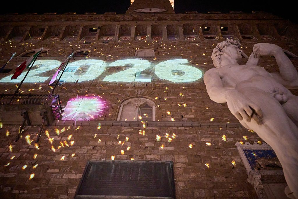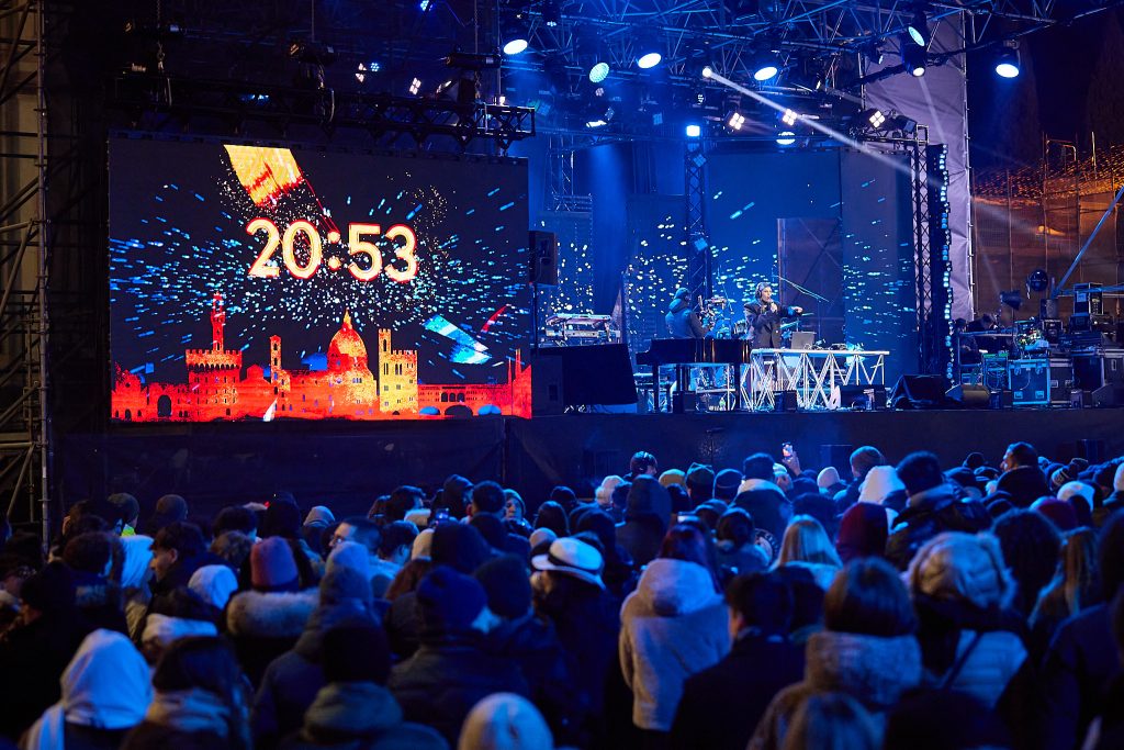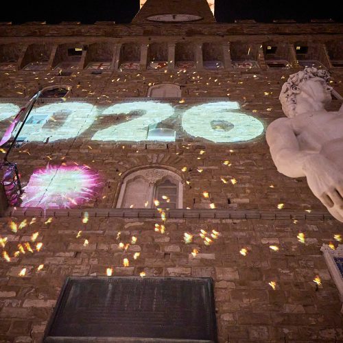 Anche piazza della Signoria sarà protagonista della notte di San Silvestro. A guidare i saluti istituzionali e il brindisi collettivo sarà Lorenzo Baglioni, che accompagnerà il pubblico con la sua energia e il suo stile inconfondibile. In prossimità della mezzanotte, il pubblico potrà assistere a uno spettacolare countdown proiettato sulla facciata di Palazzo Vecchio, accompagnato dal videomapping d’artista di Florence Lights Up, curato da Fondazione MUS.E.