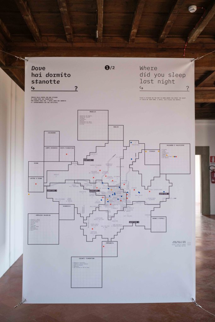 Firenze Forma Continua Lab è un’installazione-laboratorio, in cui l’approccio partecipativo del pubblico è centrale per il racconto delle trasformazioni urbane. Ciascuna sezione del percorso proponeva diversi livelli di coinvolgimento: a partire dal racconto dell’evoluzione urbana della città dal 750 a.C. al 1982 (anno dell’inserimento del Centro Storico di Firenze nella Lista del Patrimonio Mondiale UNESCO), l’installazione invitava a esplorare il territorio cittadino nella sua dimensione stratificata e in continuo mutamento passando poi alla riflessione sul presente della città, fino a volgere lo sguardo verso il futuro.