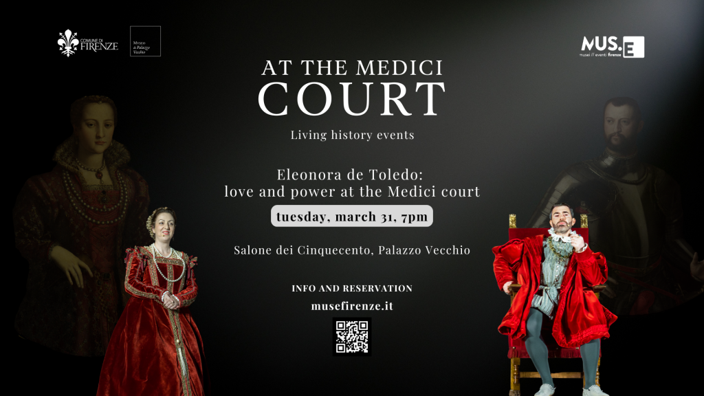 L’histoire reprend vie grâce à un événement proposé par les Musées Civiques Florentins et MUS.E, se déroulant dans le somptueux Salone dei Cinquecento. Après le succès des dernières représentations, jouées à guichets fermés, le spectacle de living history dédié à la duchesse Éléonore de Tolède, épouse de Cosme de Médicis, sera proposé pour la première fois en langue anglaise.