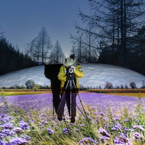 Il cuore del progetto è la tecnica stessa, interamente analogica, che permette di fondere in un unico gesto fotografico il presente e la sua possibile trasformazione futura. L’immagine reale viene attraversata in un lampo da un’altra immagine – quella del paesaggio come potrebbe apparire a fine secolo – proiettata nello stesso istante dello scatto. Il risultato è un linguaggio nuovo, una “doppia esposizione” concettuale che mette in relazione ciò che vediamo con ciò che spesso non riusciamo (o non vogliamo) immaginare.