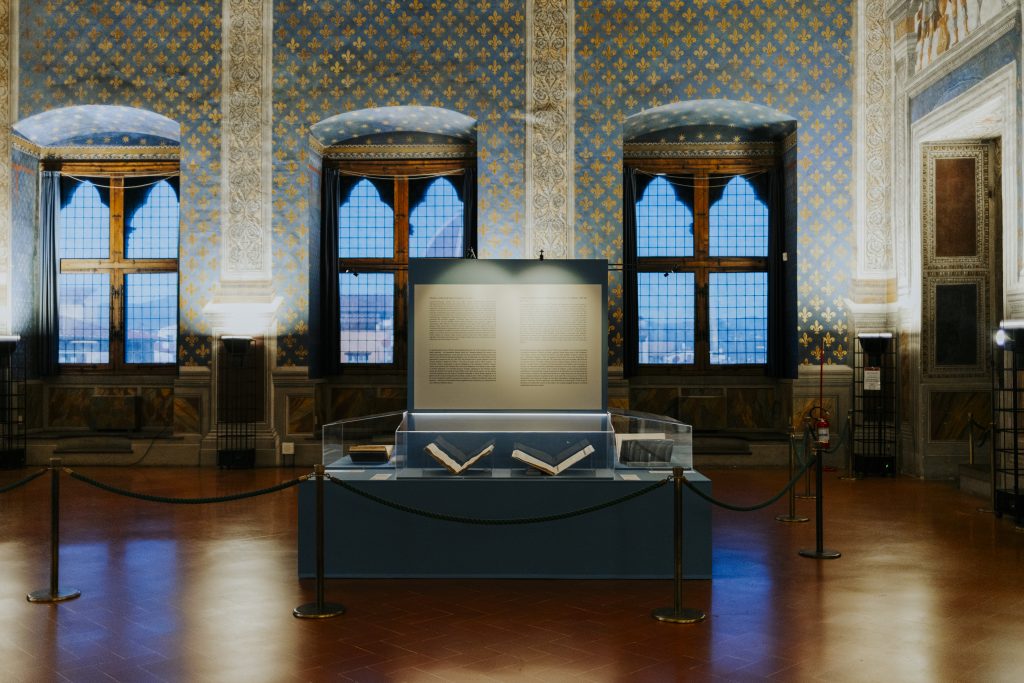Il progetto trova significativamente la sua sede nella sala dei Gigli, dove un tempo trovava posto un’importante serie di uomini famosi: sul finire del Trecento, infatti, il cancelliere Coluccio Salutati aveva promosso la nascita di un ciclo dipinto teso a ispirare i governanti della città, dove accanto a eroi, condottieri e monarchi figuravano alcuni illuminati poeti toscani, fra cui Dante, Petrarca e appunto Boccaccio. In questo senso, la mostra si pone come un’ideale prosecuzione del progetto presentato nel 2021 intorno alla figura di Dante Alighieri, in occasione del settecentenario della morte, grazie a cui era stato dato un primo risalto all’idea di bene comune e dell’apporto offerto dalle arti, dalle lettere e dalla cultura.