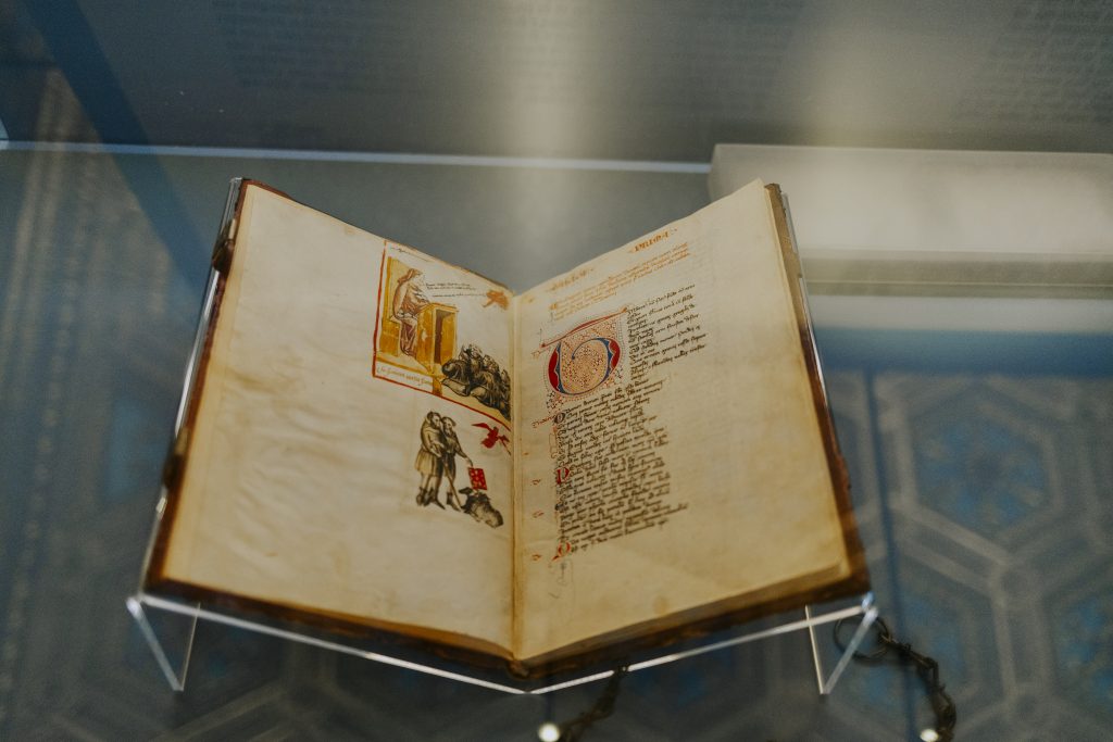 Con prestiti dall’Archivio di Stato, dalla Biblioteca Nazionale Centrale e dalla Biblioteca Medicea Laurenziana di Firenze nonché dalla Biblioteca Capitolare di Verona, la mostra dedica ampio spazio alla cultura politica del tempo di Boccaccio, in cui l’impegno civico era considerato parte integrante della cittadinanza: nel Medioevo, infatti, la partecipazione alla vita pubblica rappresentava una responsabilità condivisa e un segno distintivo di appartenenza alla comunità.