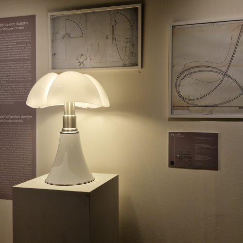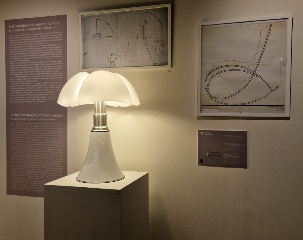 L’intenso rapporto tra la Toscana e Gae Aulenti (1927-2012) ha inizio nei primi anni Sessanta quando l’architetta collabora con le aziende Poltronova e Martinelli Luce, da cui nascono due icone del design italiano: la sedia Sgarsul e la celebre lampada Pipistrello, rispettivamente con le aziende produttrici Poltronova e Martinelli Luce.
